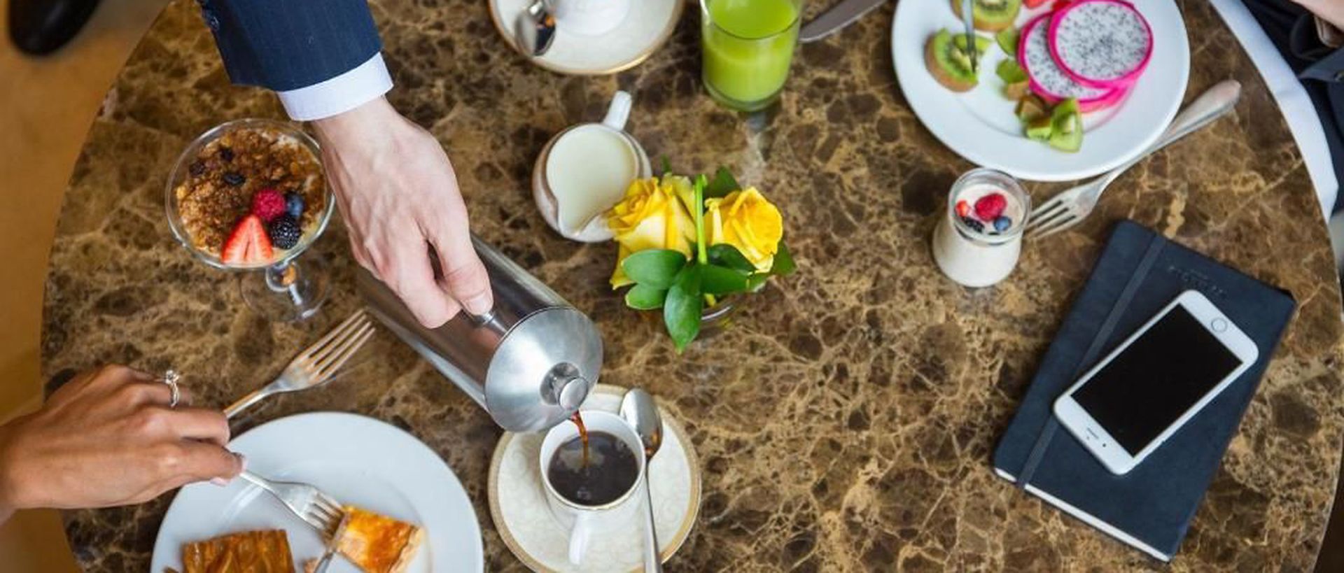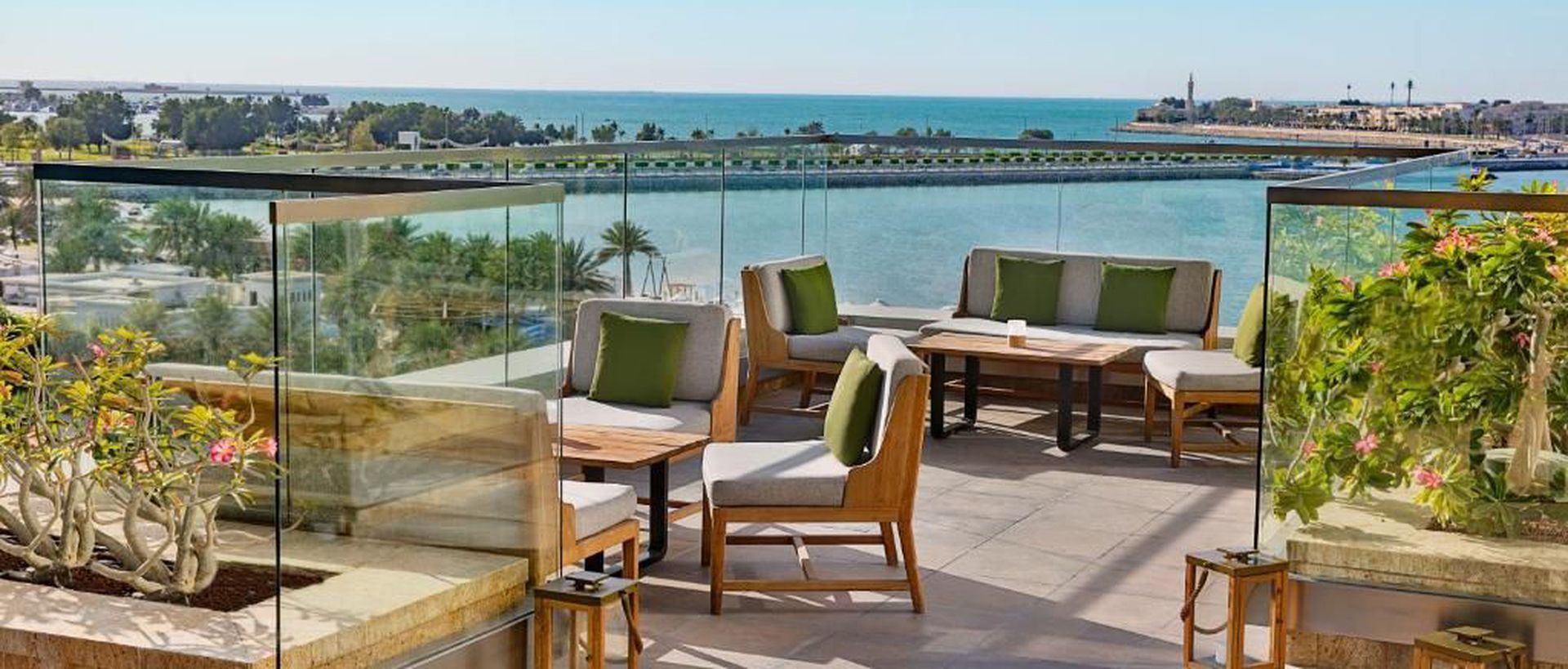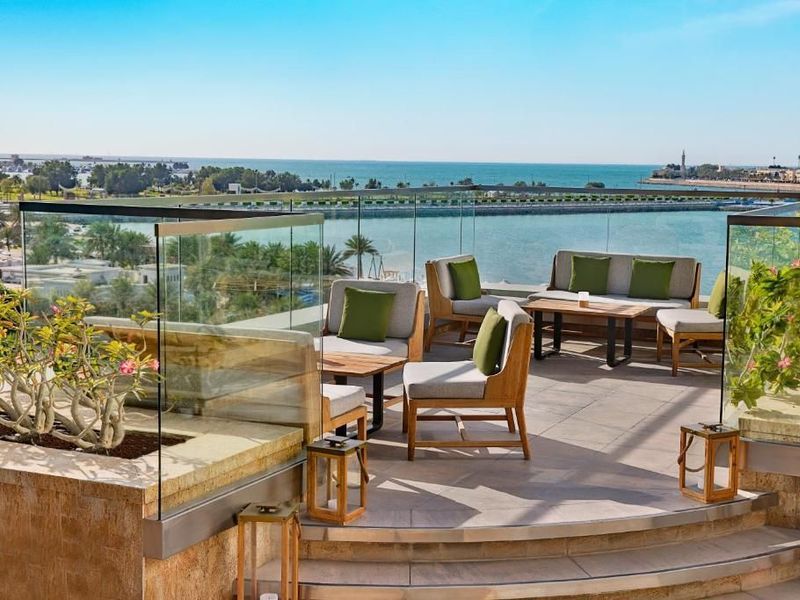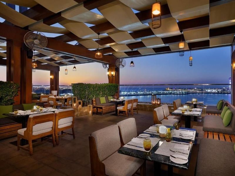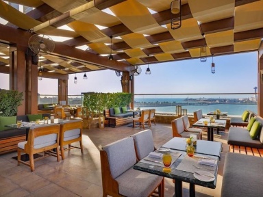 — The Terrace on the Corniche — основной ресторан с международной кухней, завтраками «шведский стол» и тематическими ужинами. Есть станции с выпечкой, яйцами на заказ, свежими фруктами. Ужин по меню или буфет — зависит от формата питания. Многие называют завтраки одними из лучших в городе.