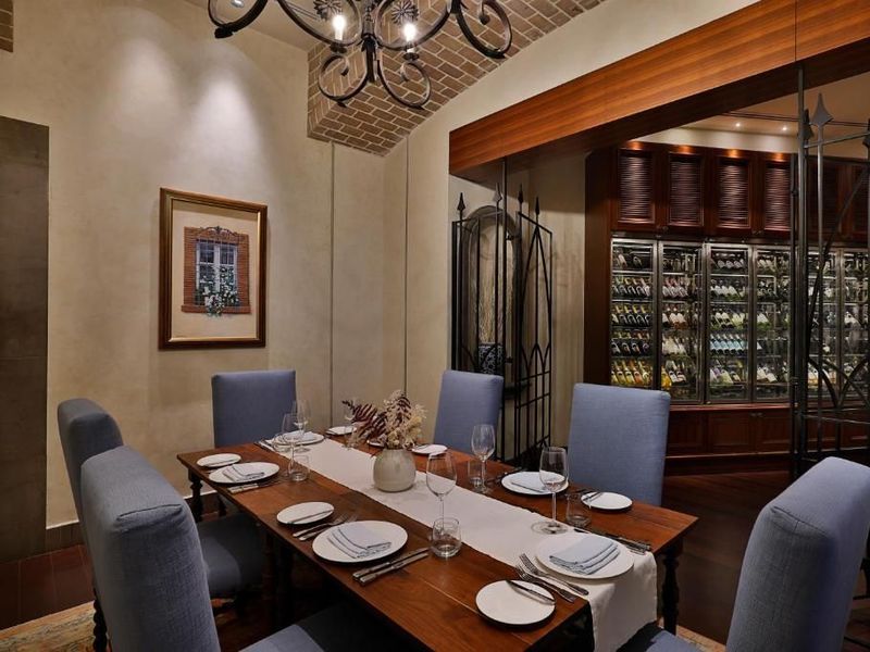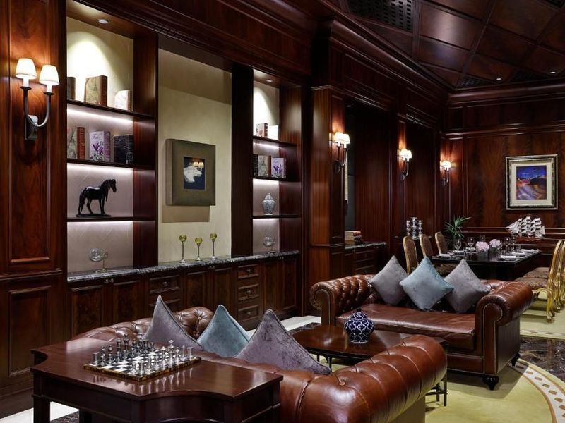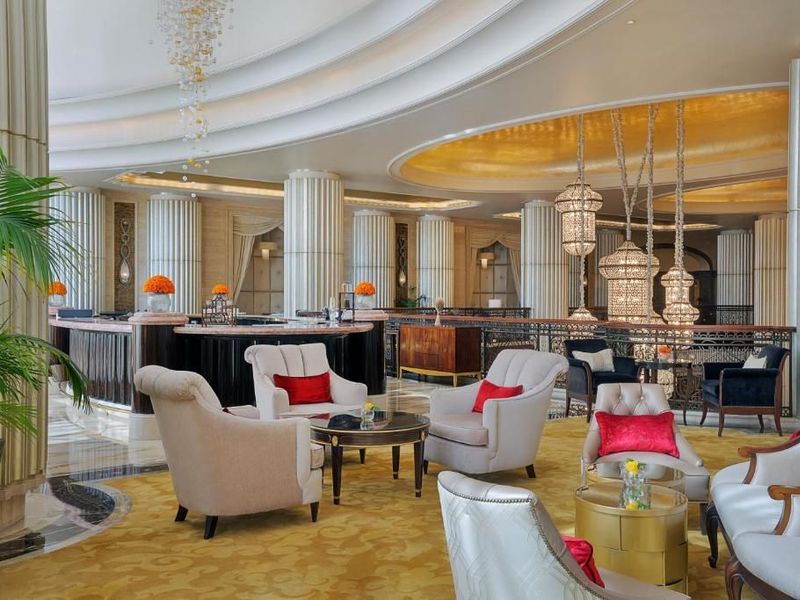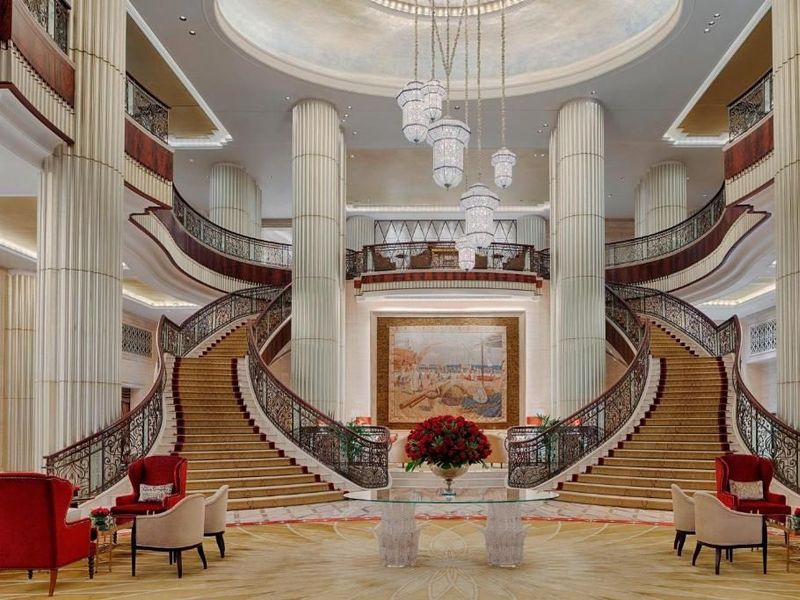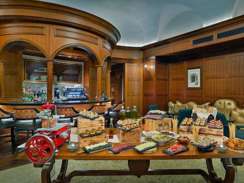 — The St. Regis Bar — классический бар с коктейлями, сигарами и вечерним ритуалом откупорки шампанского саблей (в безалкогольном варианте).